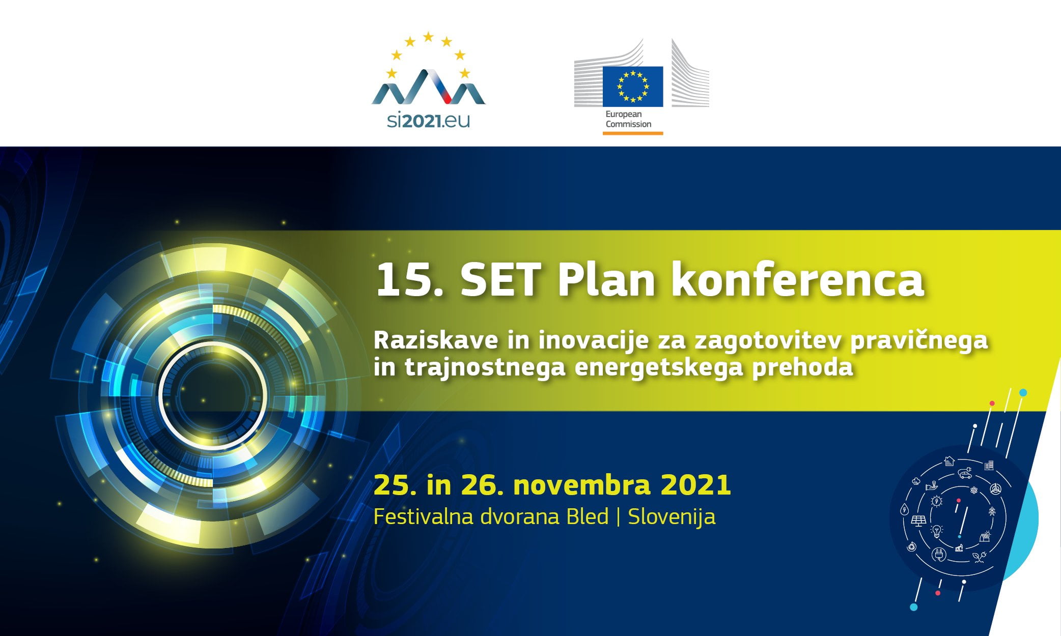 25. in 26. novembra letos bo na Bledu potekala 15. Strateška energetsko-tehnološka konferenca (SET Plan) z naslovom Raziskave in inovacije za pravičen in trajnostni energetski prehod. Letošnji brezplačni dogodek v organizaciji Ministrstva za infrastrukturo RS in Evropske komisije bo združil odločevalce v politiki, industrijo, raziskovalce, akademsko in širšo javnost, omogočil pa tako »virtualno udeležbo« kot »udeležbo v živo«.